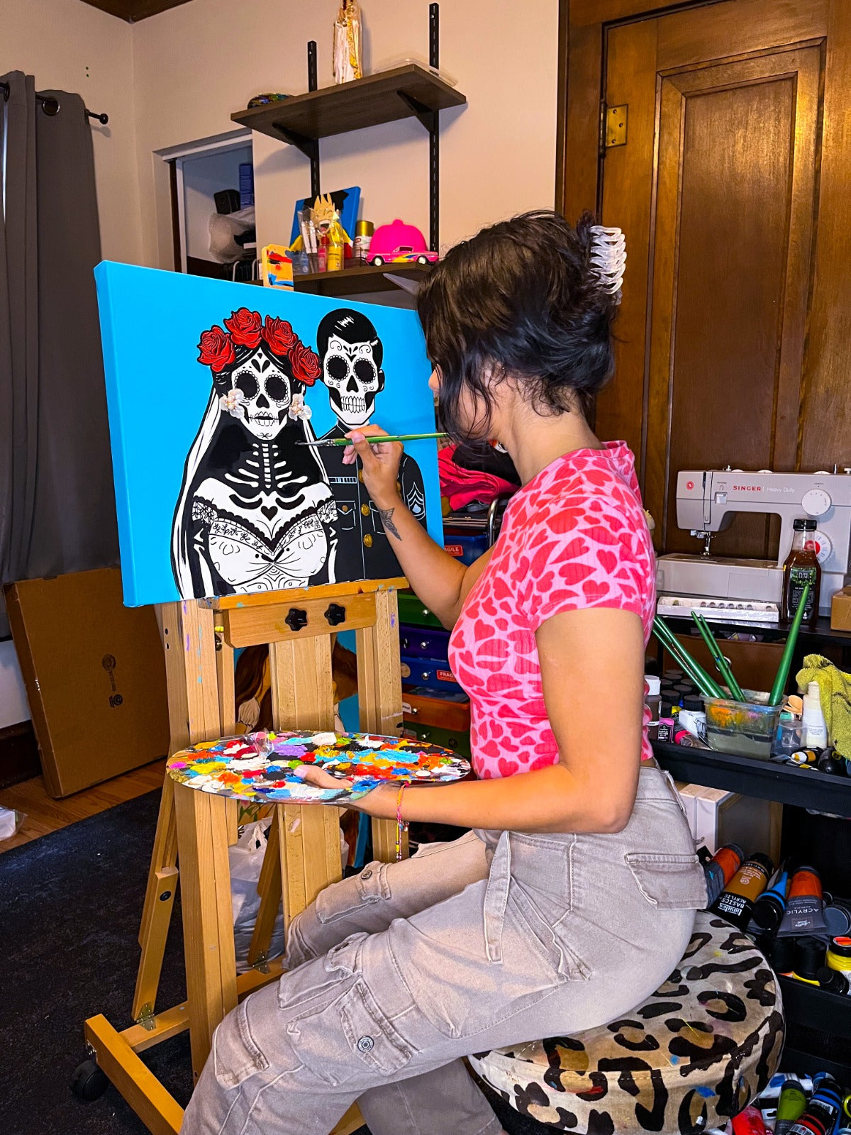 I’m Karina a multimedia artist, cancer survivor, and proud mujer who creates from the corazón. Art became my way of healing, expressing, and celebrating life after cancer. Now, I create every day — painting, printing, designing, and making pieces filled with color, cultura, and joy. From cozy hoodies to heartfelt prints, everything I make carries a little piece of my story — and I’m so happy to share it with you. ¡Gracias for being here and supporting my art journey!